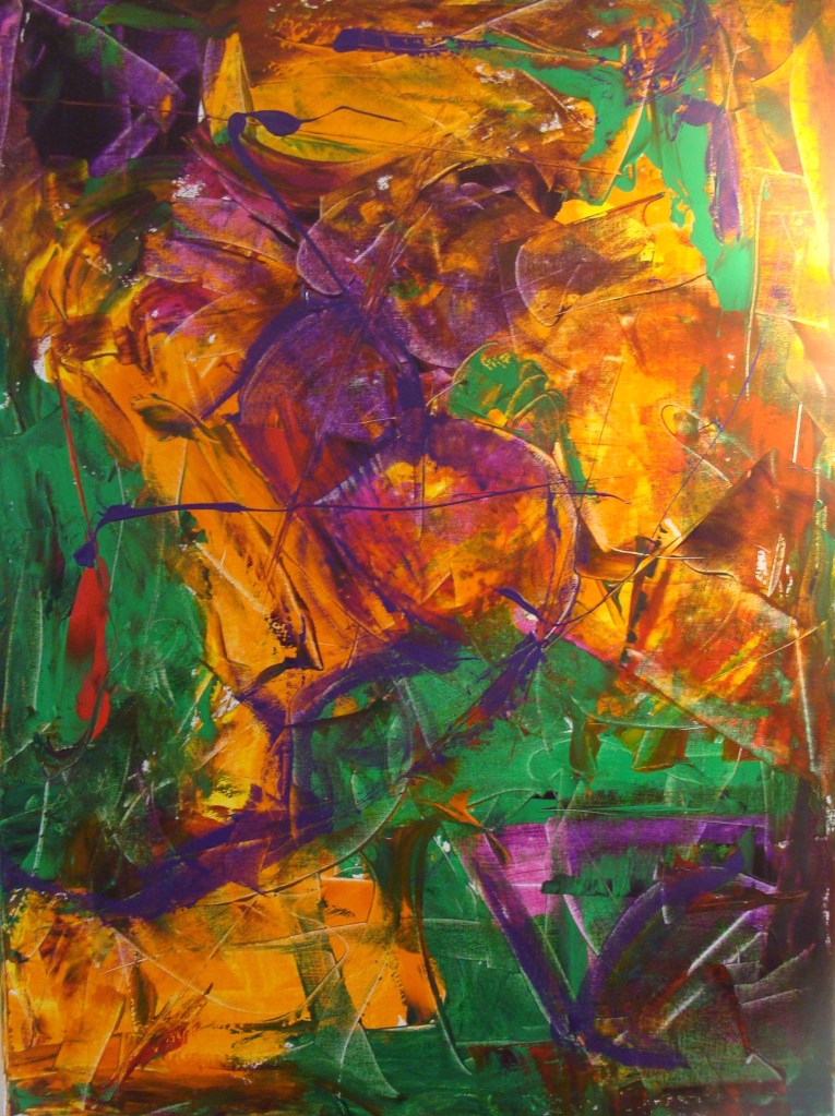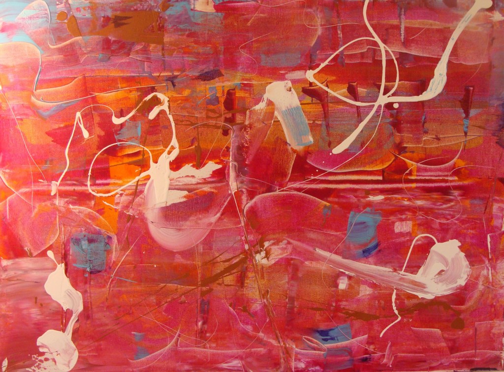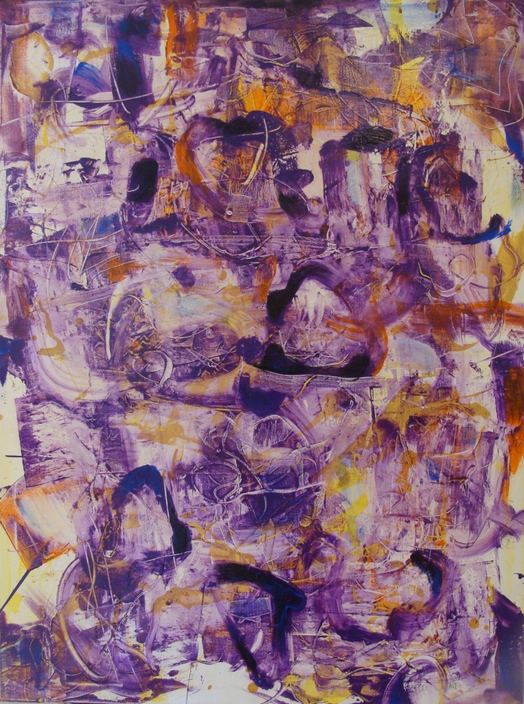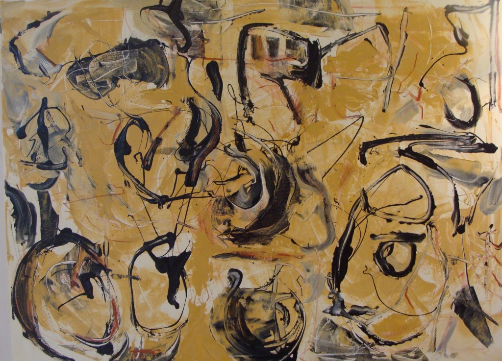 A word about these works: While they’re clearly abstract and non-representational, and while they show some of the influence on me of the New York School, I don’t abide by any philosophical or aesthetic principles per se in my work. Besides loving the work of the New York Abstract Expressionists, I must acknowledge the continuing impact on me of the most primitive art on the Planet, as well as my love and study of Asian art and Zen Buddhism. The spontaneity and unplanned use of my particular vernacular of marks, signs, and symbols is always a delightful discovery to my eye once a work is completed. Let your imagination play!